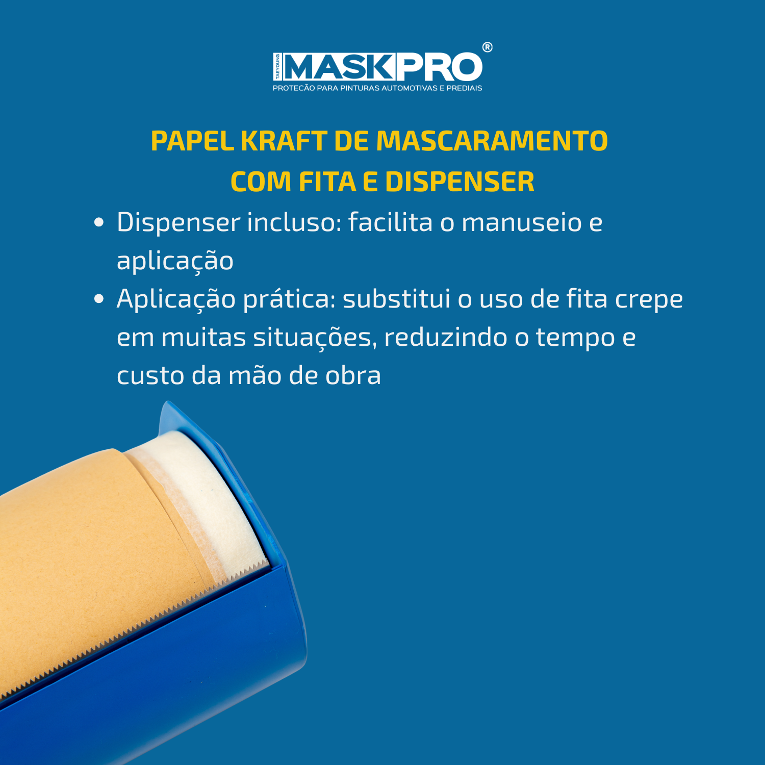 Com fita adesiva já integrada ao papel kraft, o produto reduz o tempo de aplicação, evita o desperdicío de materiais e proporciona uma proteção limpa, eficiente e precisa das superfícies.