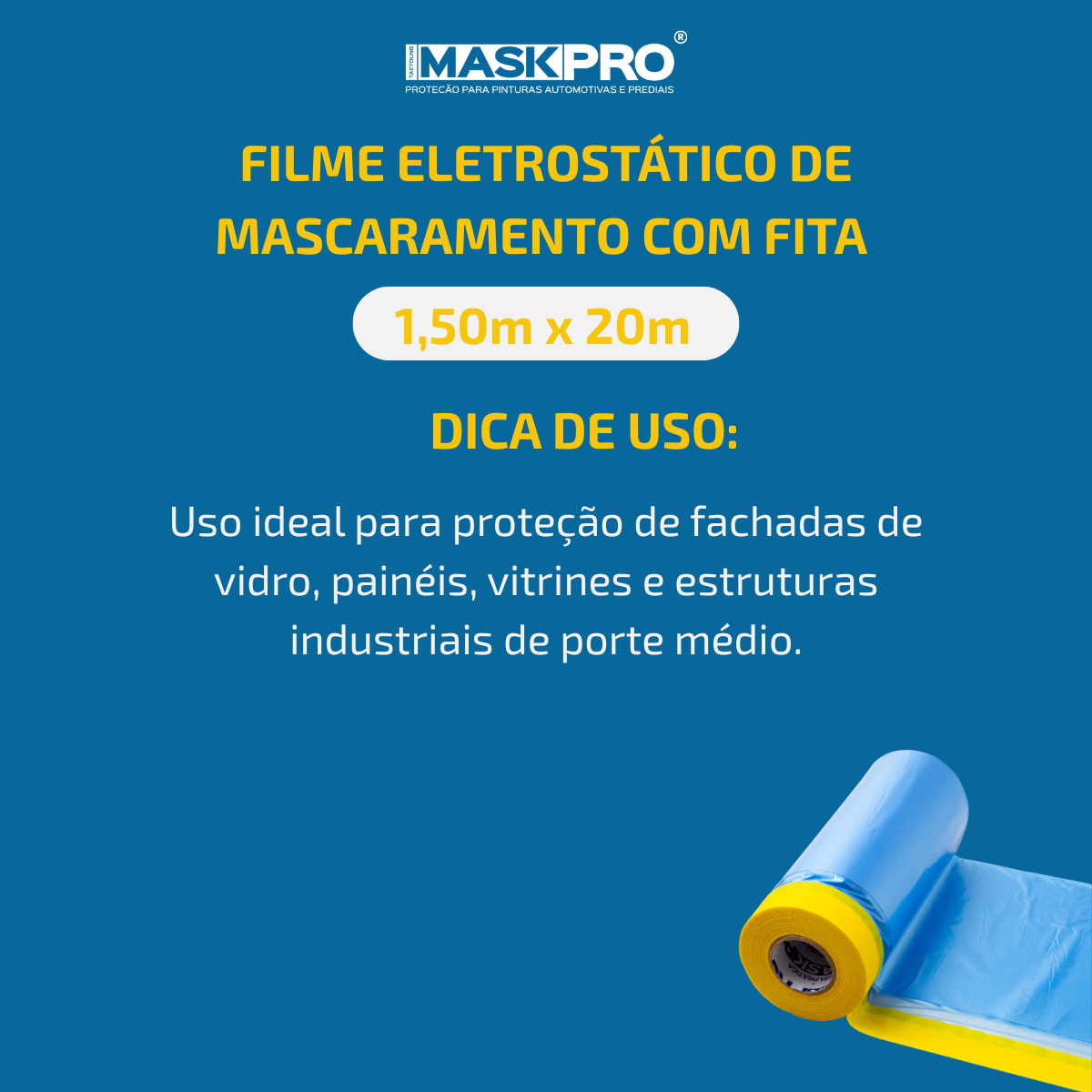 O filme eletrostático com fita adesiva MaskPro é a solução prática e profissional para proteger superfícies durante pinturas automotivas, industriais, construção e instalação/manutenção de ar condicionado.